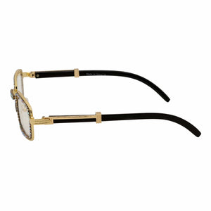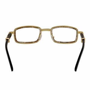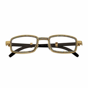 BLING TWO - Rhinestone Retro 90s Metal Rectangle Glasses Gold Clear Lens