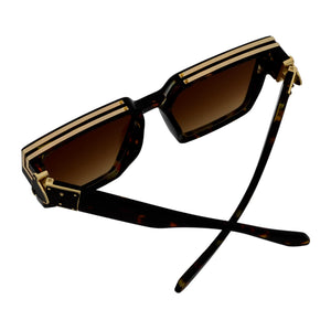 The Two Billion oversized square sunglasses exude high fashion that is inspired by iconic luxury eyewear. The Two Billion oversized square sunglasses are similar to our original Billionaires, which feature a deep beveled front with slightly different metal accents along the top and sides. The Two Billion high-fashion square sunglasses are crafted with a thick polycarbonate frame, tri-barrel metal hinges, gold-colored metal accents, and polycarbonate lenses that provide complete U400 UVA/UVB protection.
