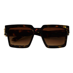 TWO BILLION - Large Horn Rimmed Square Fashion Sunglasses Tortoise Amber