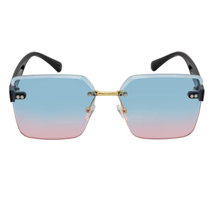 CASCADE - Rimless Oversize Square Sunglasses Black-Gold Blue-Pink Lens