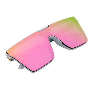ELECTRIC - Large Rimless Rectangle Shield Sunglasses White Pink Mirror