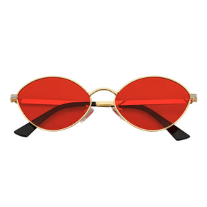 GROOVE - Retro Small Metal Round Oval Sunglasses Gold Red Tint