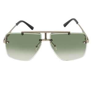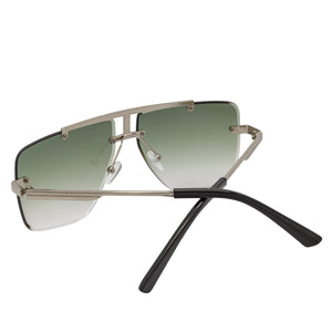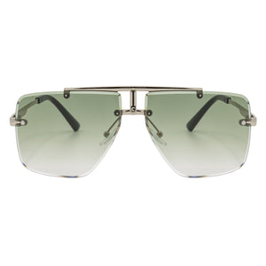 DIRECTOR - Rimless Metal Flat Top Aviator Sunglasses Silver Green Fade Lens